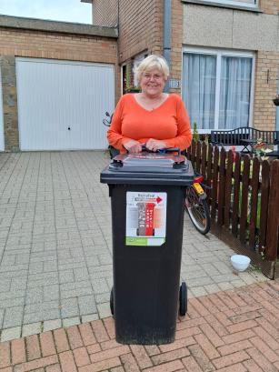 “Ik heb het kleinste model container voor zowel restafval als groenafval. Deze zijn heel compact en nemen dus niet veel plaats in op mijn appartement. Door de wieltjes moet ik nooit heffen en dat is heel gemakkelijk. Het is ook properder in het straatbeeld.”