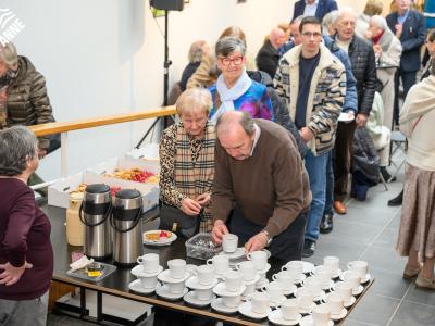 De bezoekers genoten tijdens de opening niet alleen van de kunst, maar ook van een heerlijke koffie en een stukje taart. 🍰