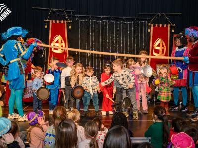 Dat is samen zingen, dansen, springen en lachen … en gelukkig zijn er geen stoute kinderen te zien! 🎶🎉 Het was een dag vol plezier voor jong en minder jong, met de Sint en zijn vrolijke Pieten.