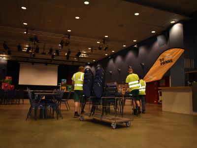 Feestje gepland met je vereniging? Zaaltje nodig als particulier? Geen partytafels in huis? Riskeert de bomma op de grond te moeten zitten wegens een gebrek aan stoelen? Logistiek staat voor jou klaar! Deze 45 medewerkers zijn actief om zowel events van het lokaal bestuur als van verenigingen en private partners logistiek te ondersteunen. Ze zetten zalen klaar, jongleren met materiaal voor buitenevenementen en verzorgen de bediening op recepties van het lokaal bestuur. Ze doen dit met veel flair en flexibiliteit. Je ziet ze vaak in het weekend en ‘s avonds aan het werk.
