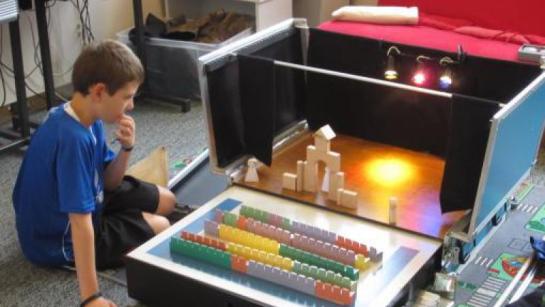Kinderen geraken op een speelse manier vertrouwd met alles wat bij theater hoort.