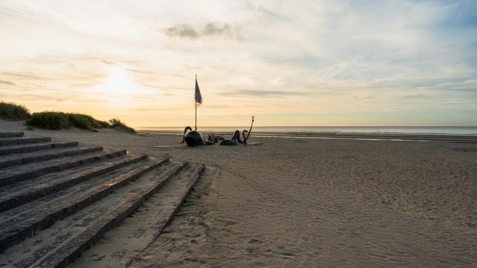 Je start je wandeling op het strand, bij het Leopold I-monument